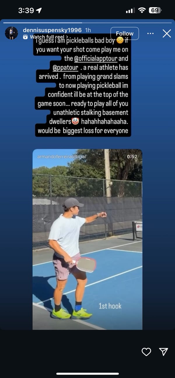 The final skilled match Uspensky performed in was in March 2020. Since then, it appears he has turned his life to turning into knowledgeable pickleball participant.